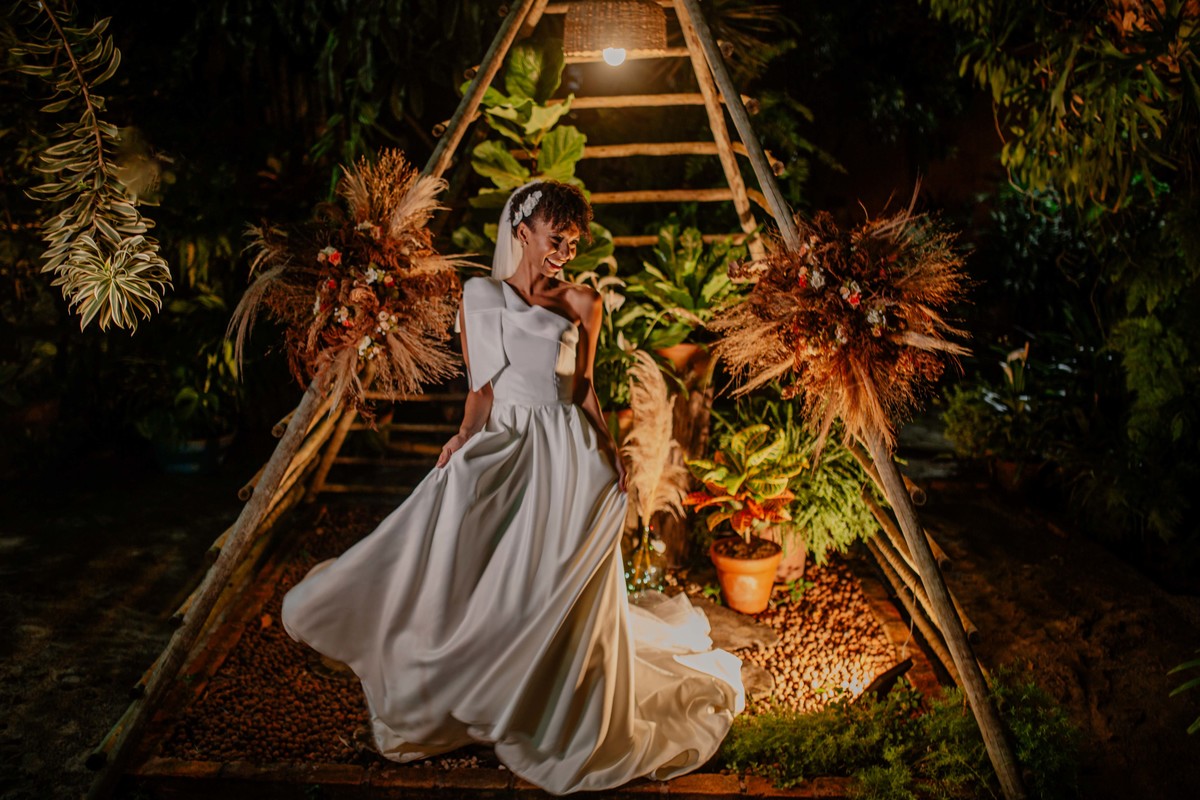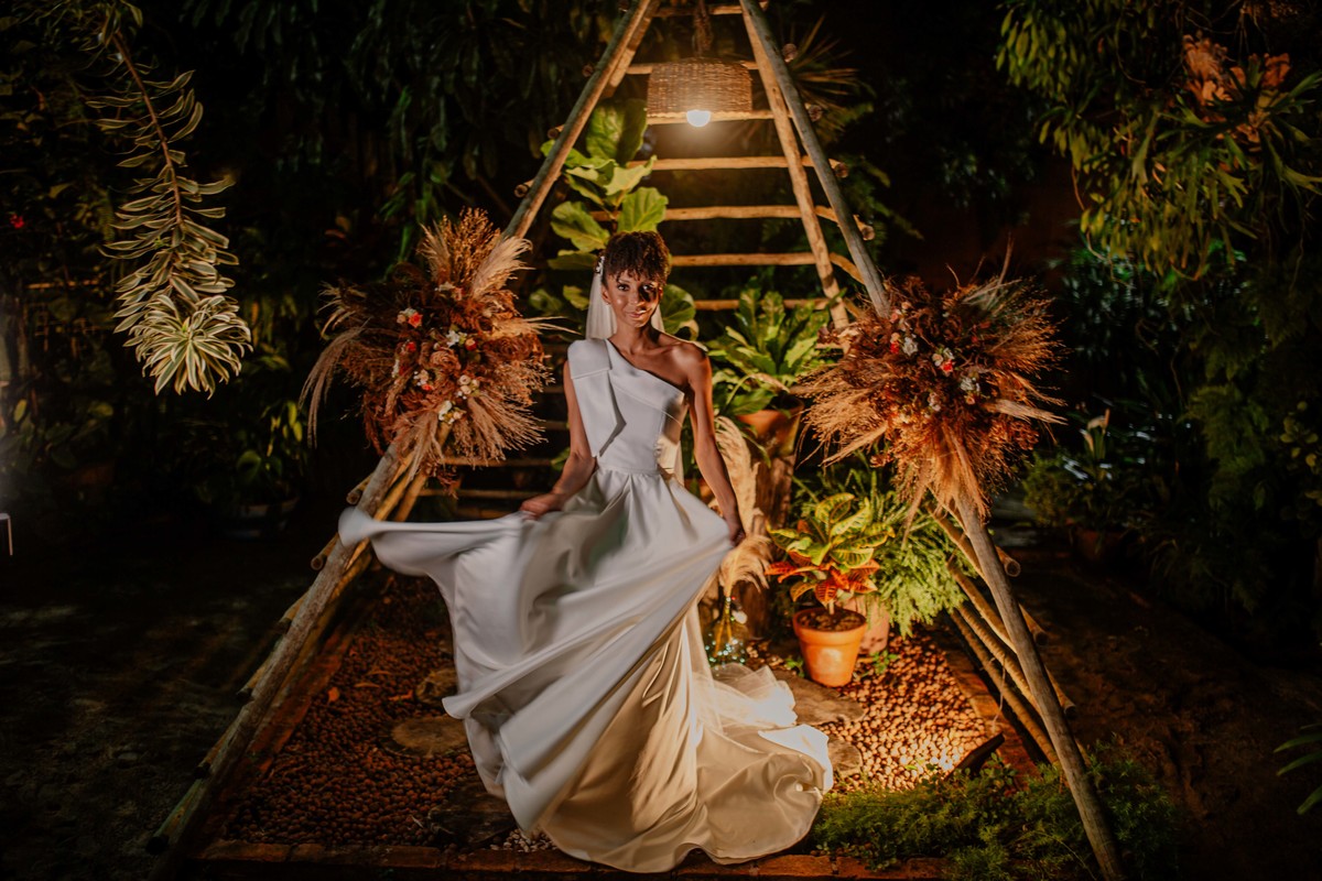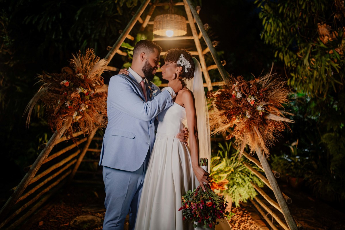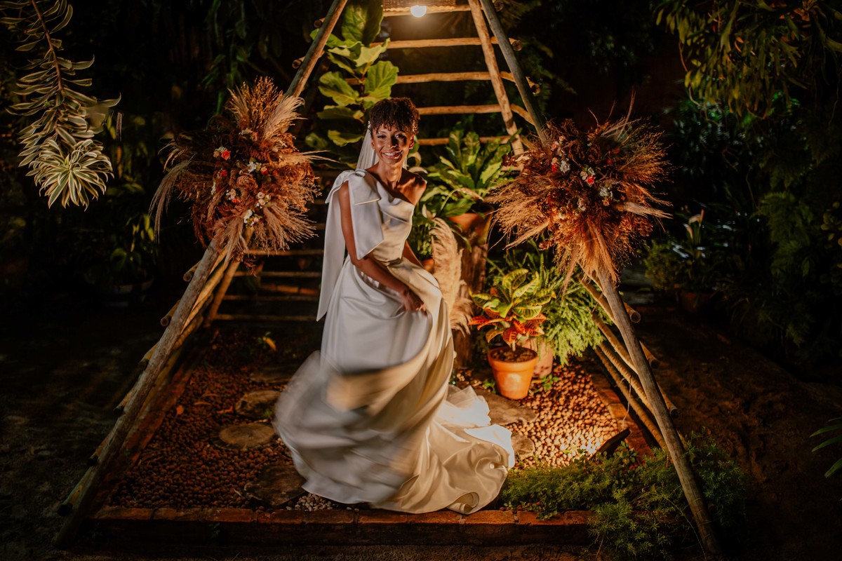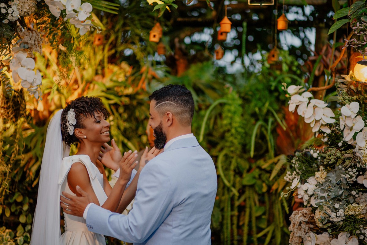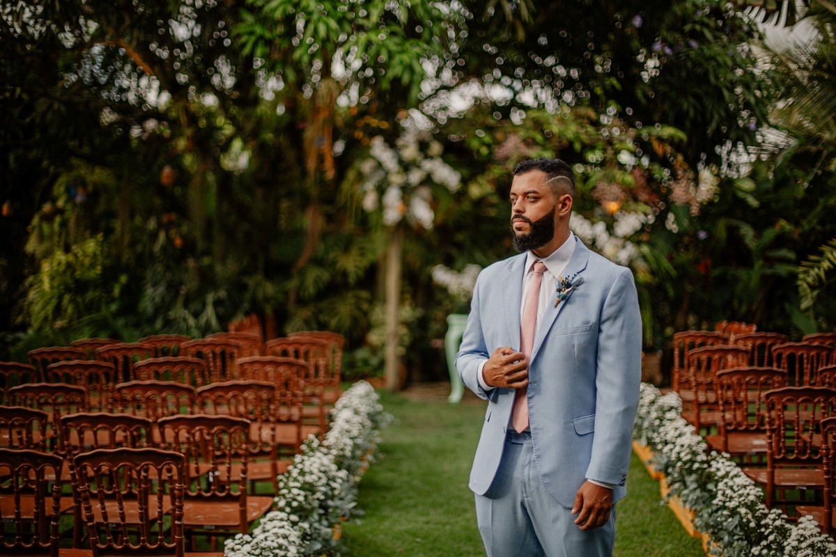 Sob o amplo céu azul e entre campos verdes que se estendem até onde os olhos podem ver, testemunhamos a bênção sagrada deste casamento religioso ao ar livre. O aroma da terra fresca e o suave balançar das folhas nas árvores acompanham o casal enquanto eles trocam votos de amor eterno. A cerimônia, realizada em meio à natureza exuberante, é um testemunho da harmonia entre o divino e o terreno. A luz do sol dourada acaricia cada rosto com uma bênção celestial, enquanto o vento sussurra canções de felicidade nos ouvidos dos presentes. Este casamento é mais do que um evento; é uma celebração sagrada, onde o amor floresce em perfeita sintonia com a criação ao seu redor.