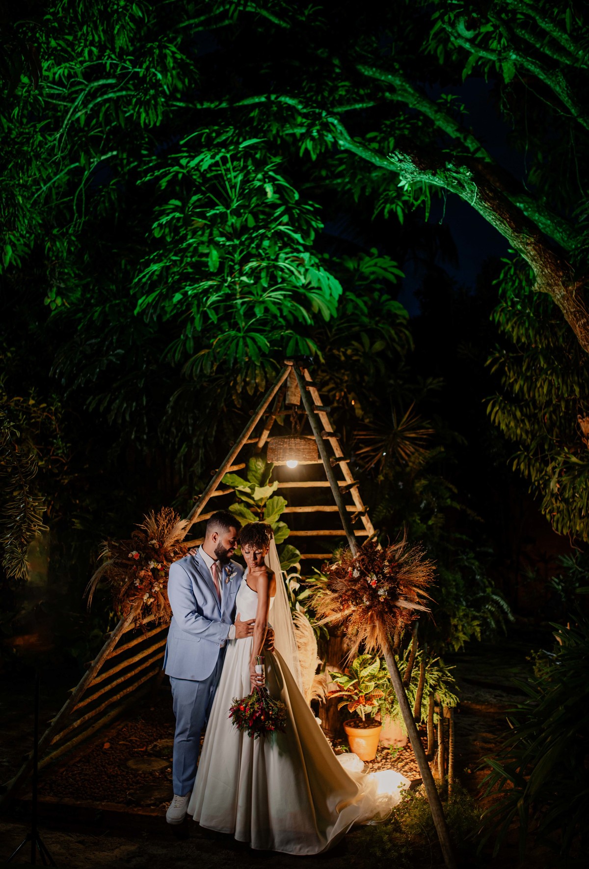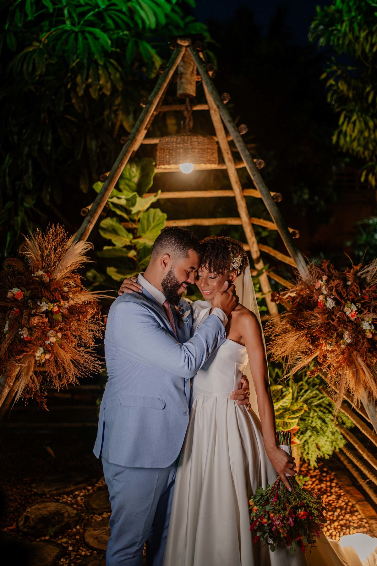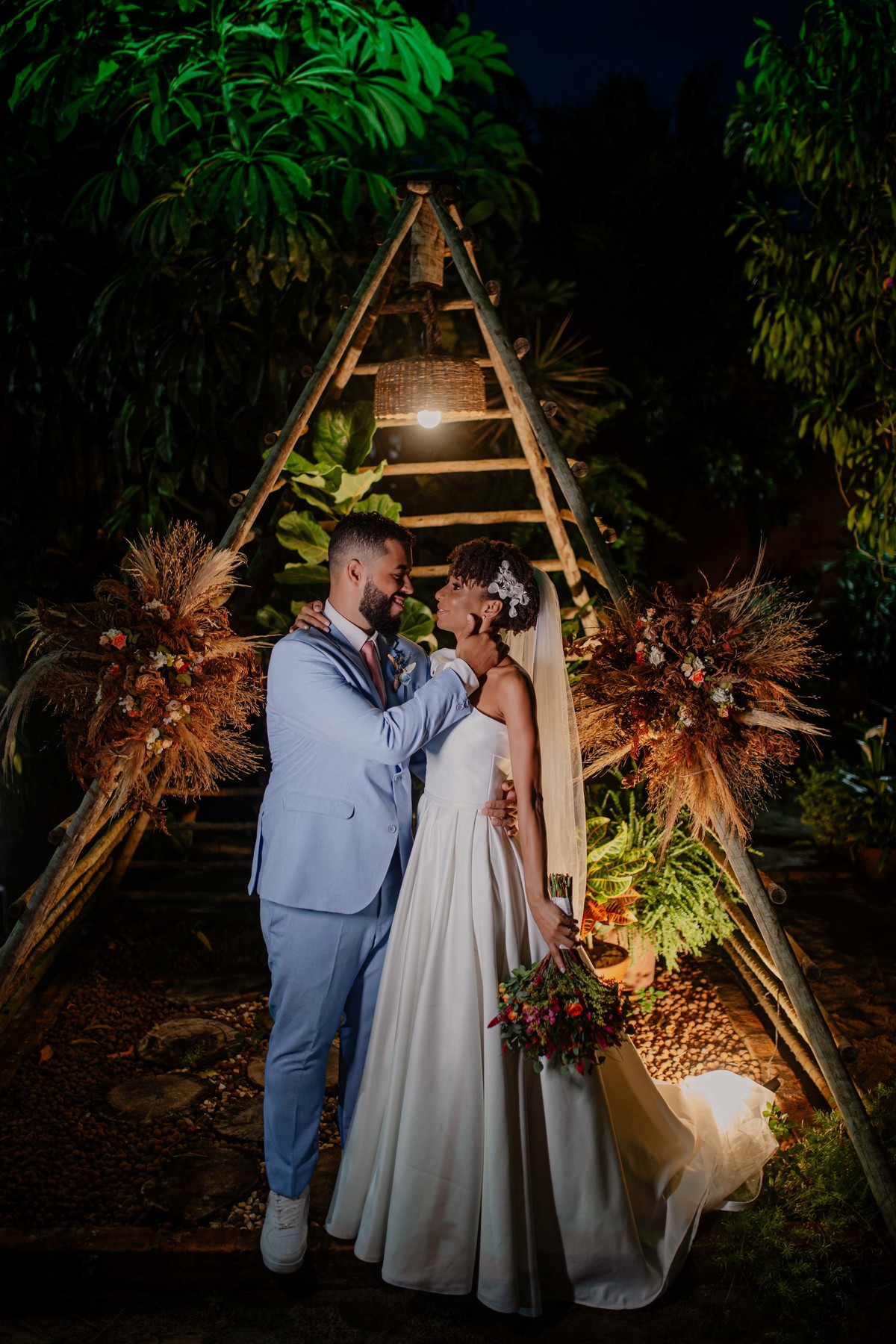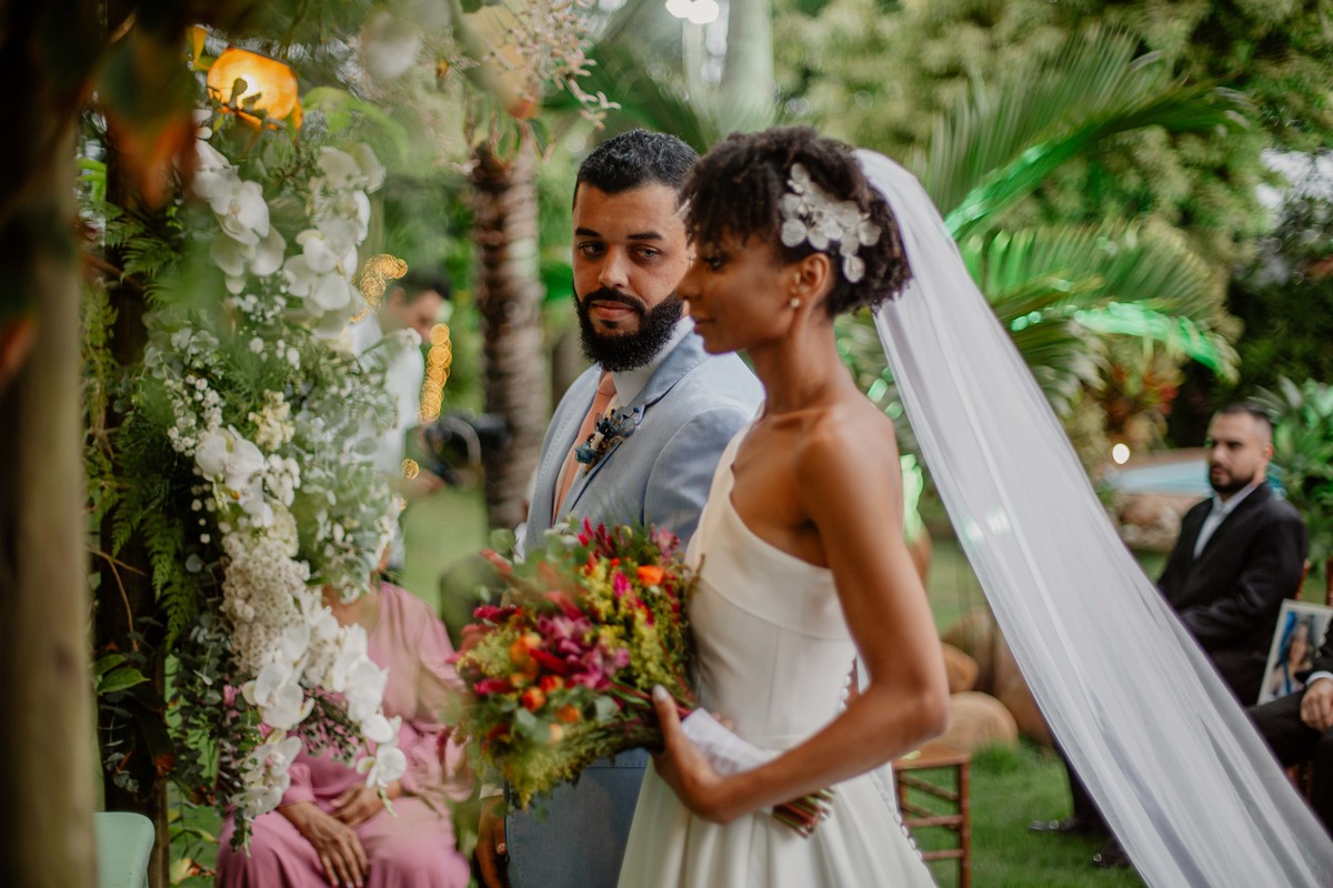 Sob o amplo céu azul e entre campos verdes que se estendem até onde os olhos podem ver, testemunhamos a bênção sagrada deste casamento religioso ao ar livre. O aroma da terra fresca e o suave balançar das folhas nas árvores acompanham o casal enquanto eles trocam votos de amor eterno. A cerimônia, realizada em meio à natureza exuberante, é um testemunho da harmonia entre o divino e o terreno. A luz do sol dourada acaricia cada rosto com uma bênção celestial, enquanto o vento sussurra canções de felicidade nos ouvidos dos presentes. Este casamento é mais do que um evento; é uma celebração sagrada, onde o amor floresce em perfeita sintonia com a criação ao seu redor.