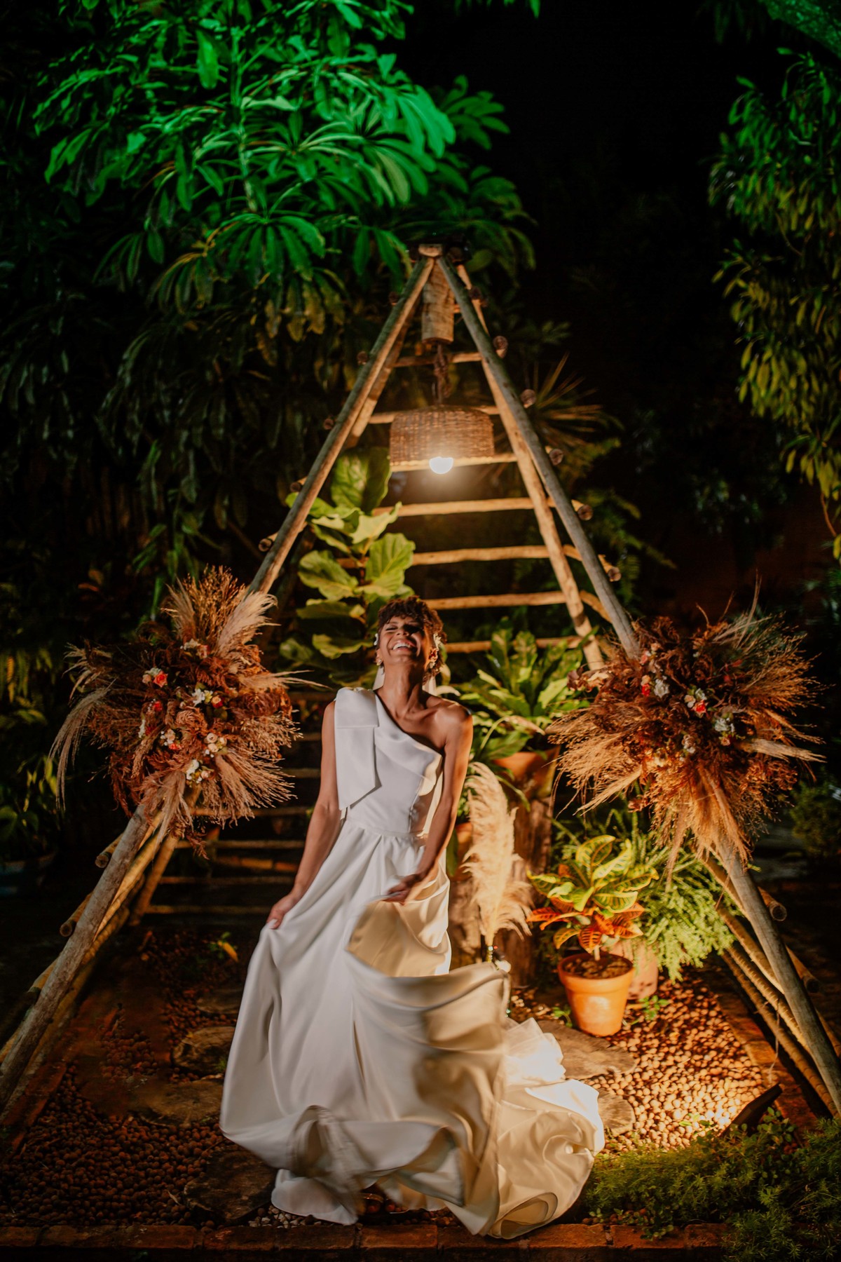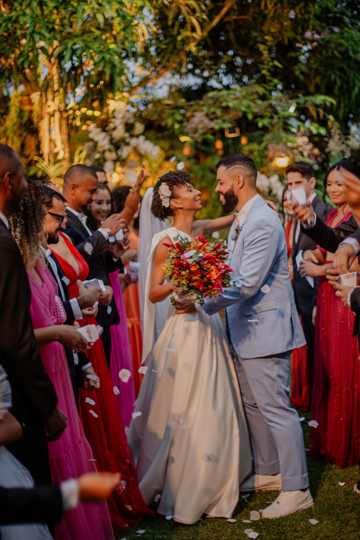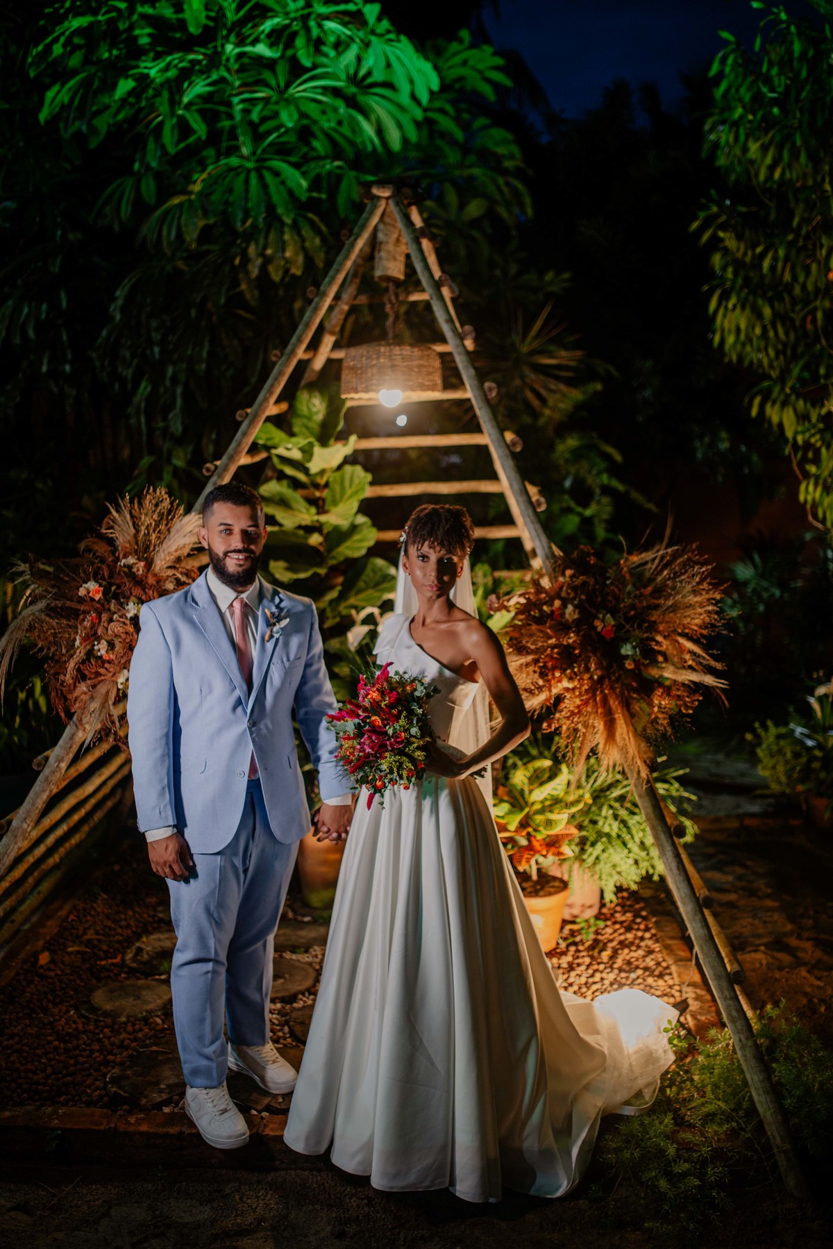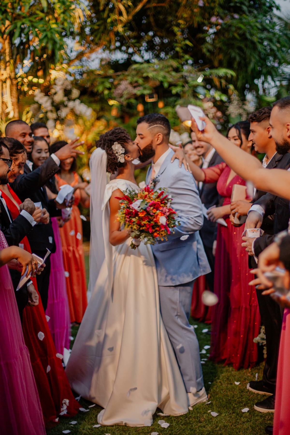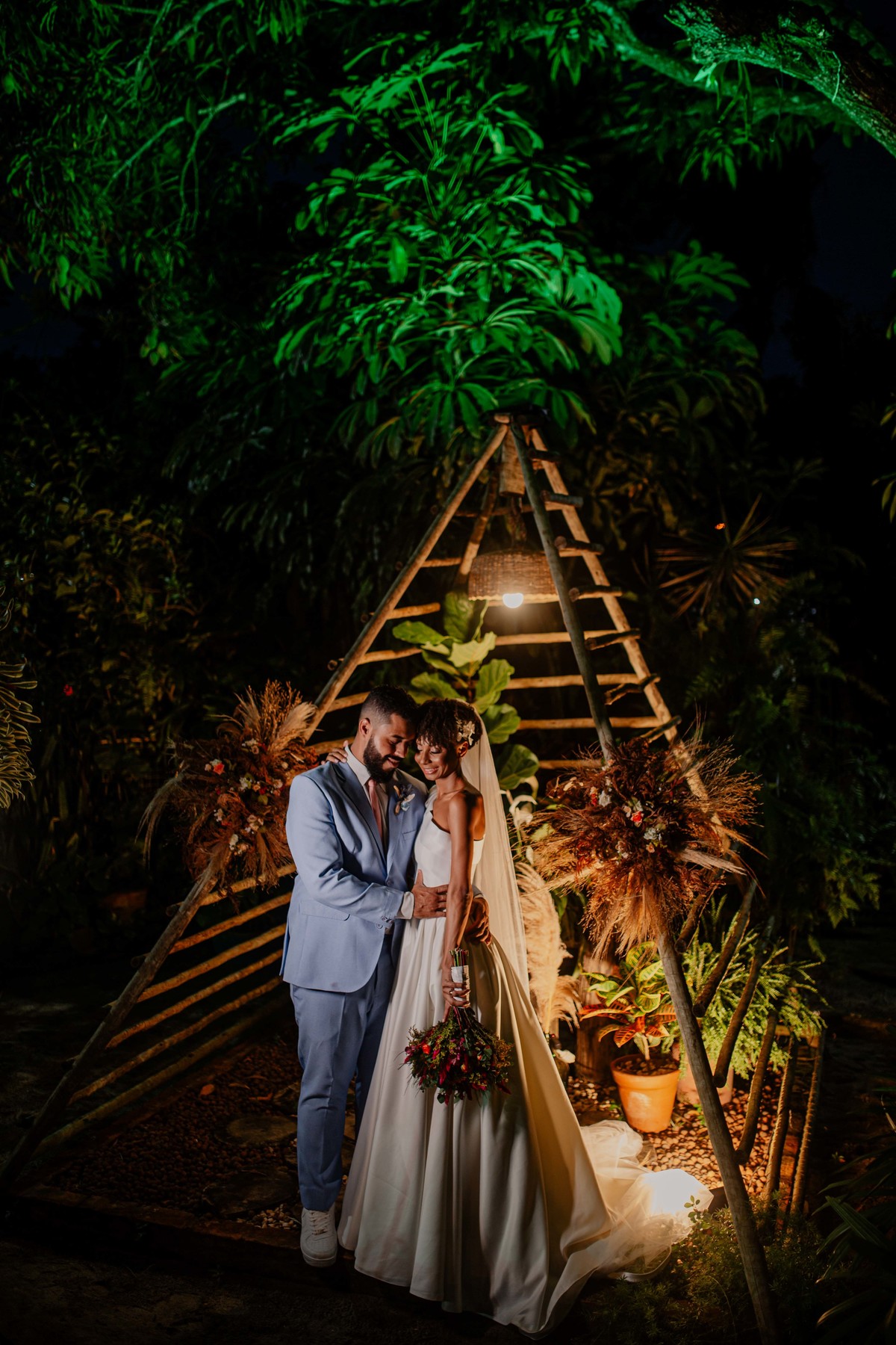 Sob o amplo céu azul e entre campos verdes que se estendem até onde os olhos podem ver, testemunhamos a bênção sagrada deste casamento religioso ao ar livre. O aroma da terra fresca e o suave balançar das folhas nas árvores acompanham o casal enquanto eles trocam votos de amor eterno. A cerimônia, realizada em meio à natureza exuberante, é um testemunho da harmonia entre o divino e o terreno. A luz do sol dourada acaricia cada rosto com uma bênção celestial, enquanto o vento sussurra canções de felicidade nos ouvidos dos presentes. Este casamento é mais do que um evento; é uma celebração sagrada, onde o amor floresce em perfeita sintonia com a criação ao seu redor.