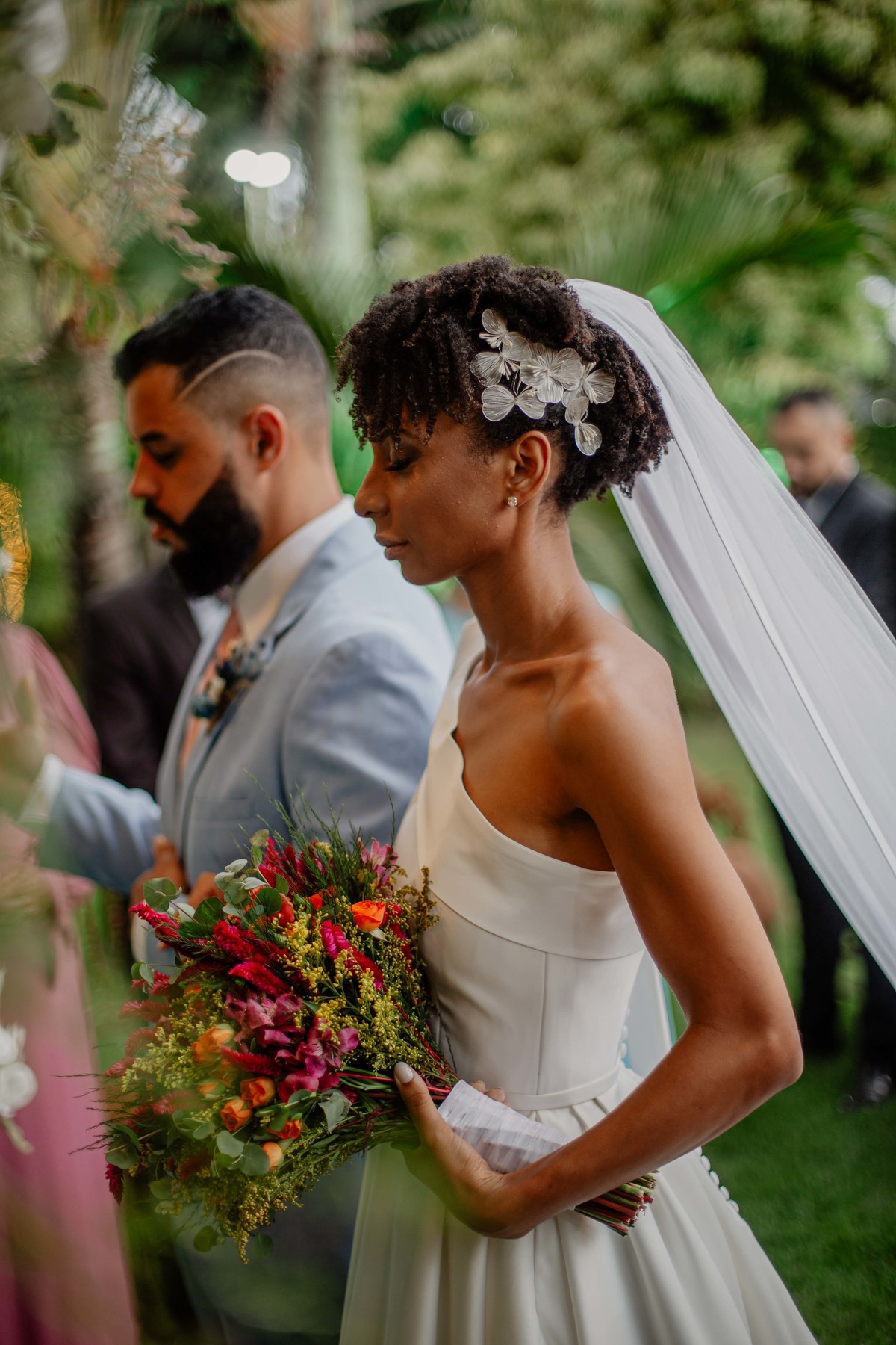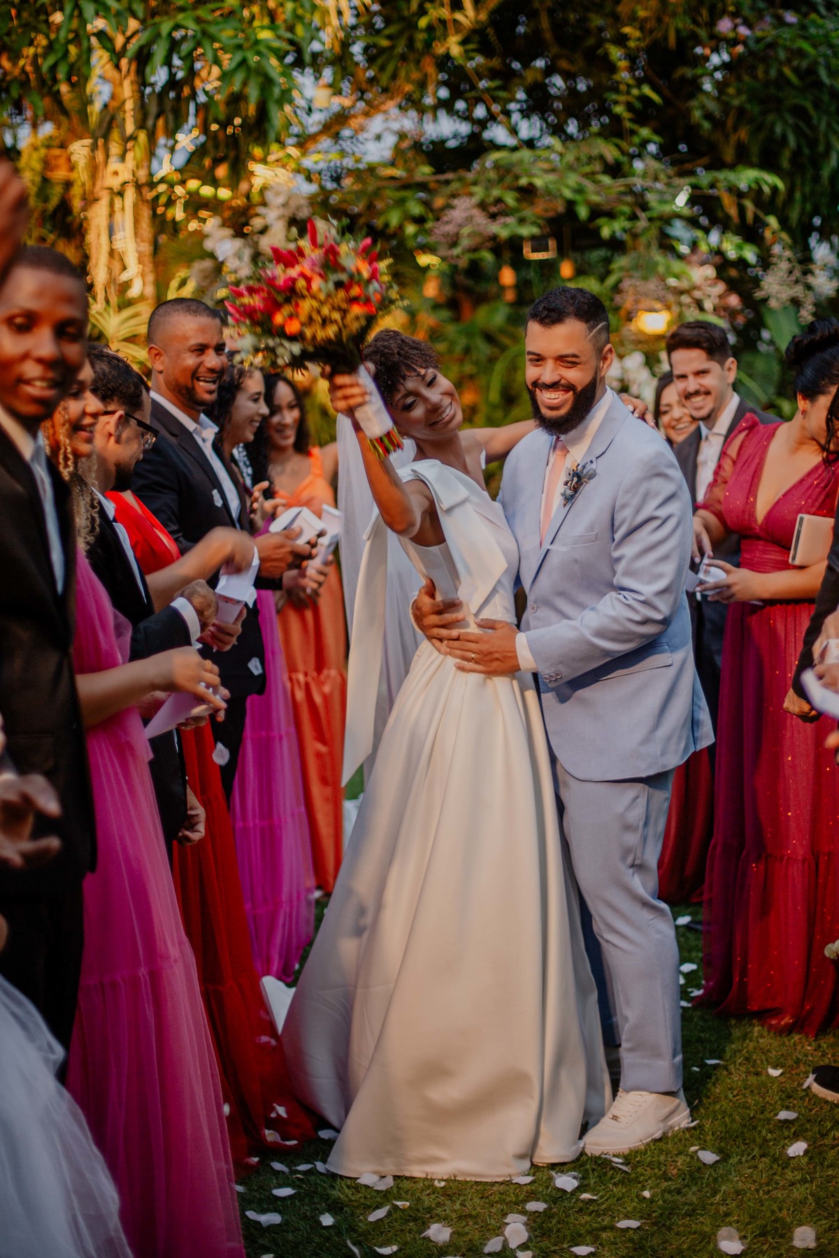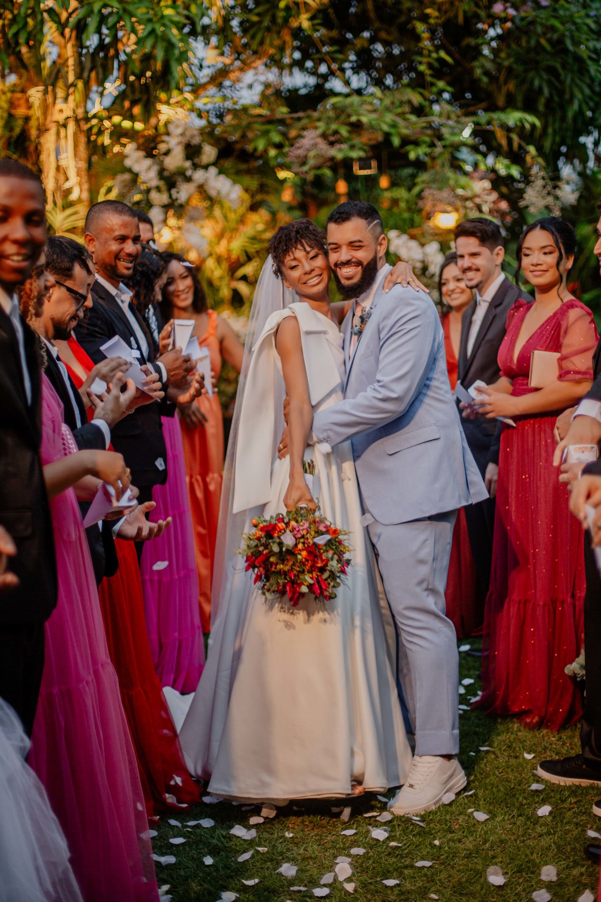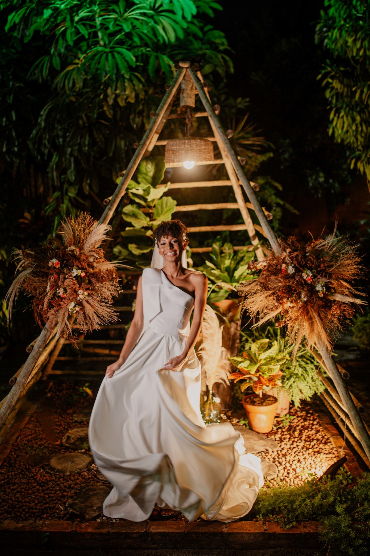 Sob o amplo céu azul e entre campos verdes que se estendem até onde os olhos podem ver, testemunhamos a bênção sagrada deste casamento religioso ao ar livre. O aroma da terra fresca e o suave balançar das folhas nas árvores acompanham o casal enquanto eles trocam votos de amor eterno. A cerimônia, realizada em meio à natureza exuberante, é um testemunho da harmonia entre o divino e o terreno. A luz do sol dourada acaricia cada rosto com uma bênção celestial, enquanto o vento sussurra canções de felicidade nos ouvidos dos presentes. Este casamento é mais do que um evento; é uma celebração sagrada, onde o amor floresce em perfeita sintonia com a criação ao seu redor.